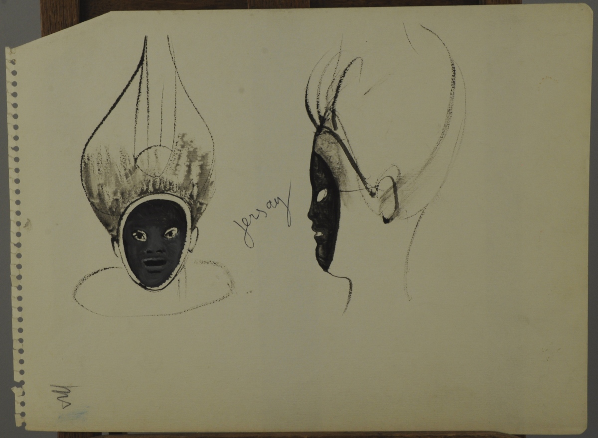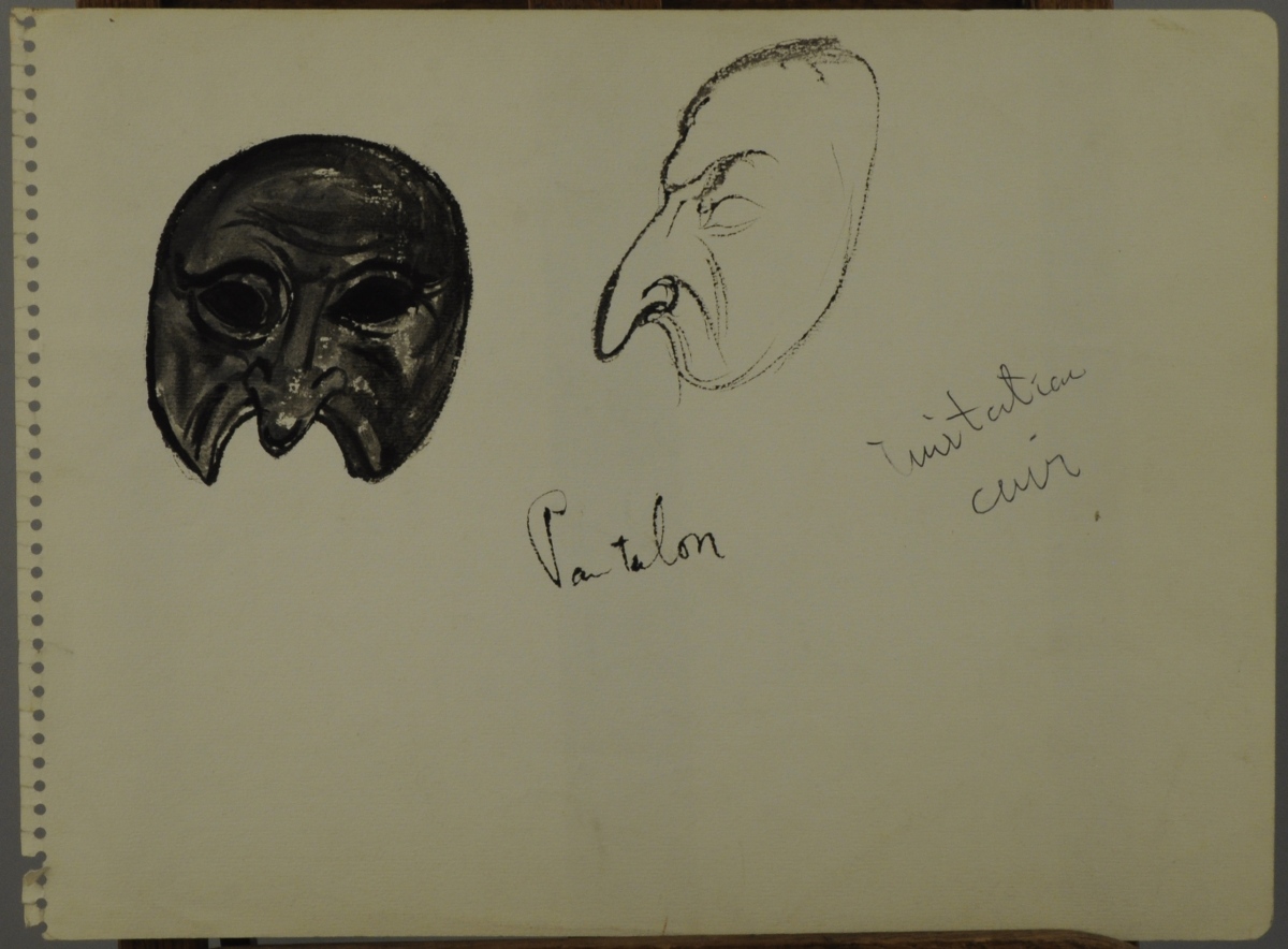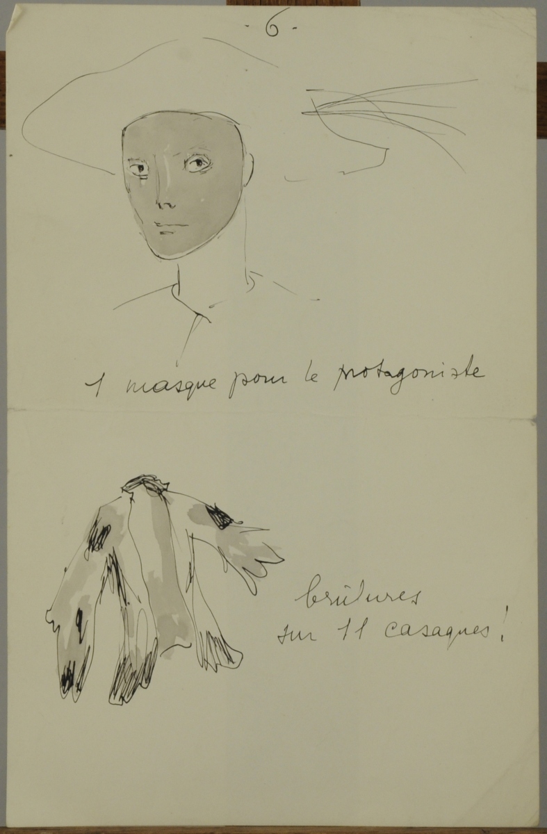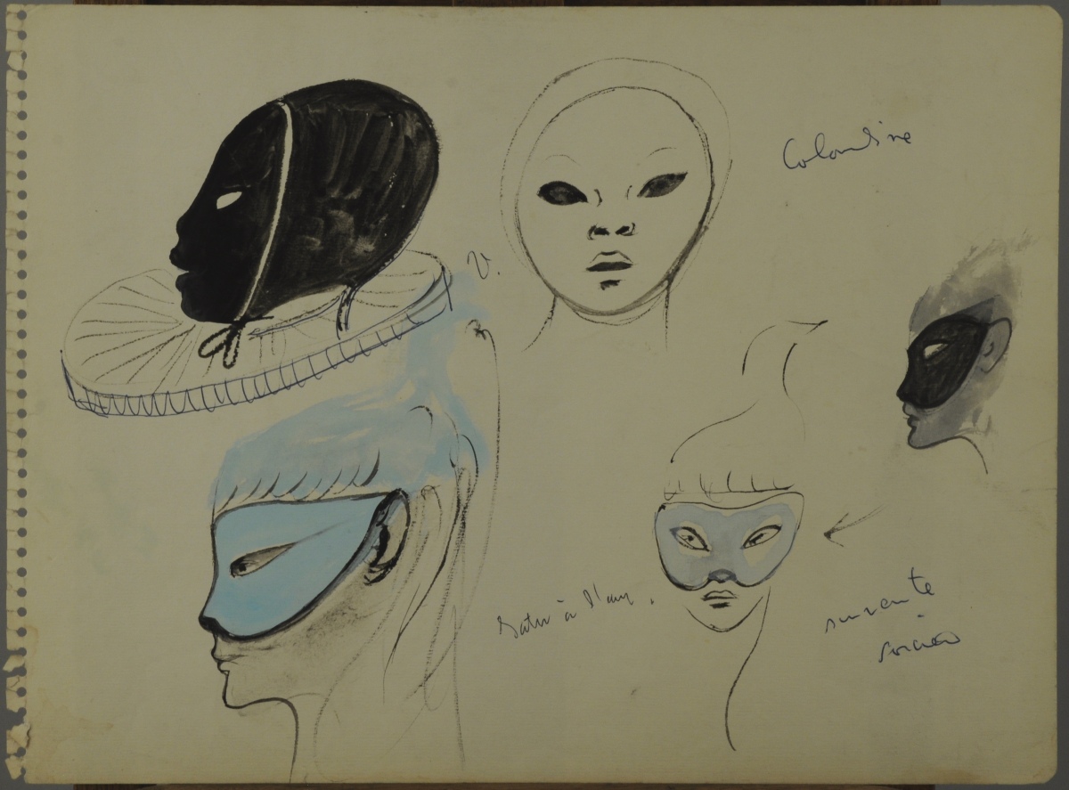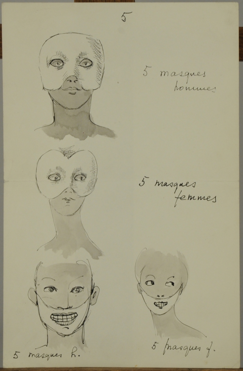 Joint: Cinq études de MASQUES et COSTUMES. Encre noire, annotés. 21 x 13,5 cm. (usures)
