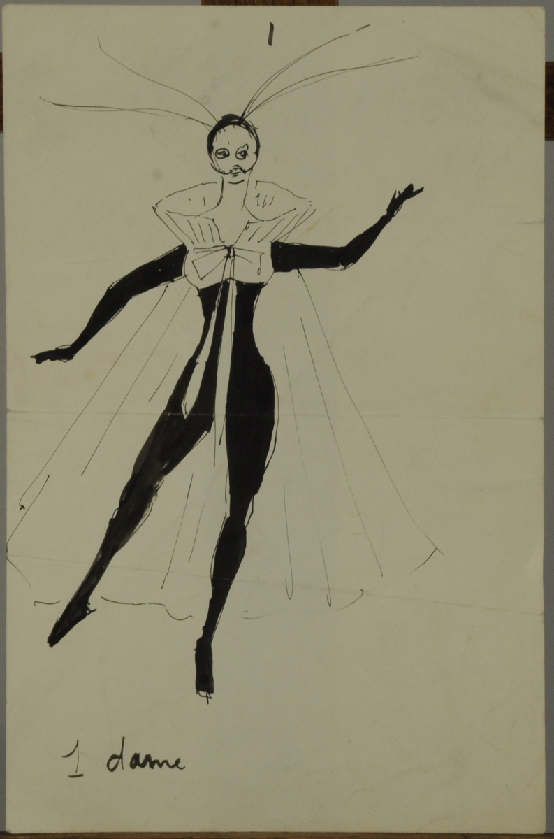 - Maquettes de costumes de CHAT à la fraise. Deux feuilles. Papier, signé en bas à droite. 23,5 x 31 cm. (tâches)