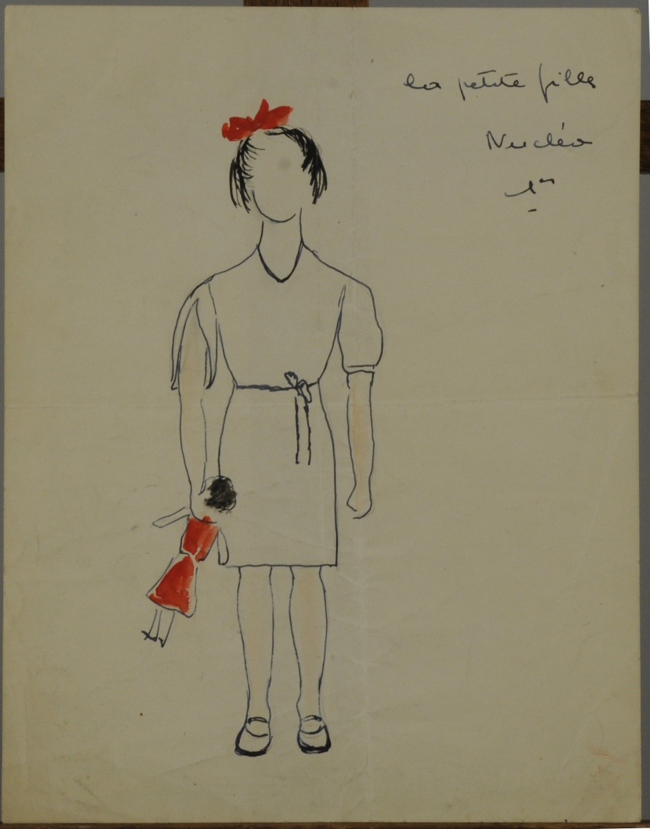 - "LA PETITE FILLE". Encre et aquarelle sur papier, titrée "la petite fille / Nucléo / 1er". 22 x 17 cm. (plis)