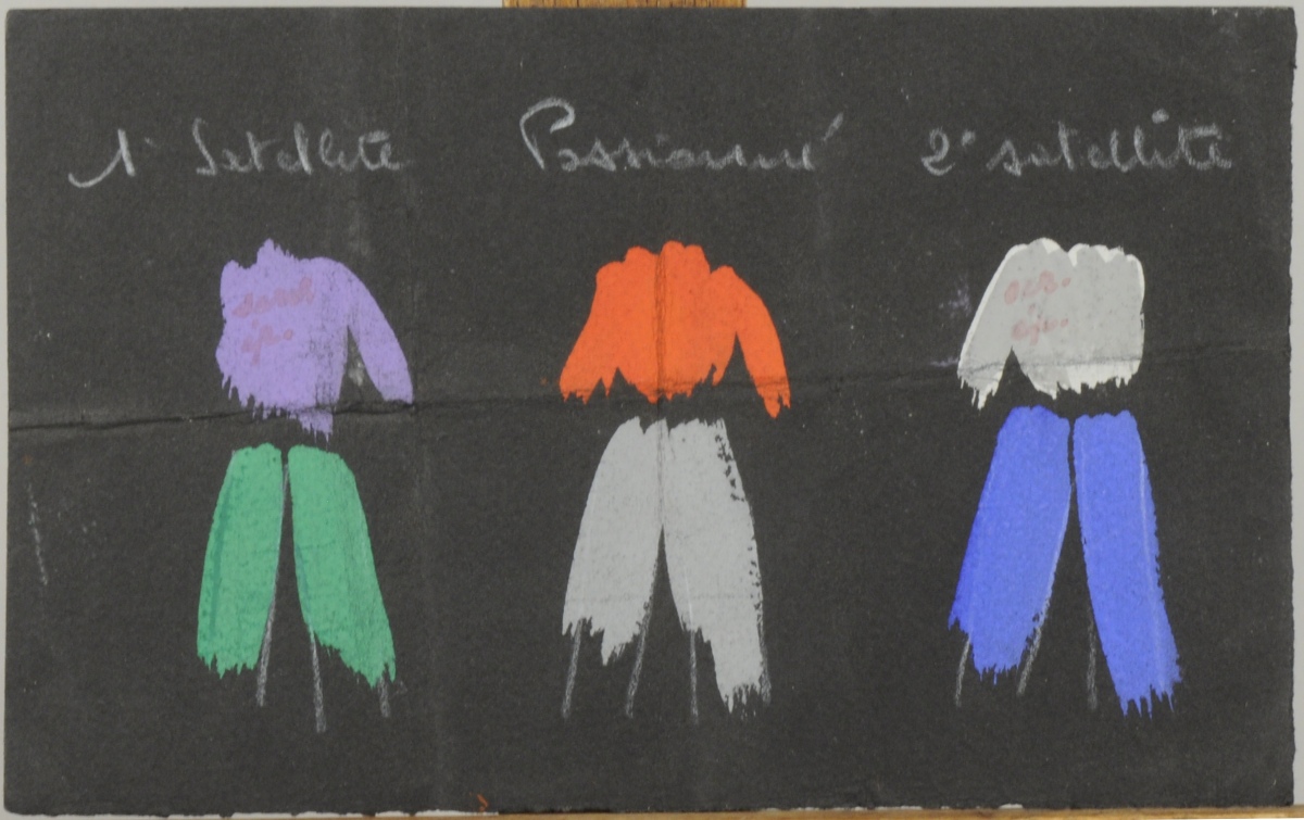 - NUCLEA, 1952. Spectacle "Nucléa" mis en scène au TNP-Jean Vilar par Gérard Philipe, scénographie: Calder en 1952. Une feuille. Encre et aquarelle sur papier, titrée "la petite fille / Nucléa/ 1er". 22 x 17 cm. (plis)
