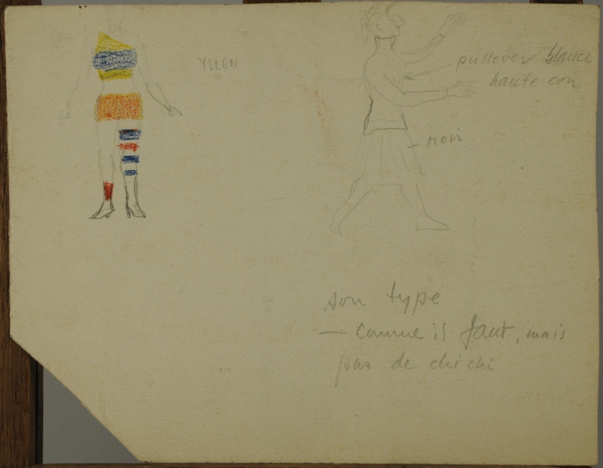 Join: Maquettes de COSTUMES et accessoires. Quatre feuilles. Crayon, annotés. Formats divers. le plus grand, 33 x 25 cm. (usures)