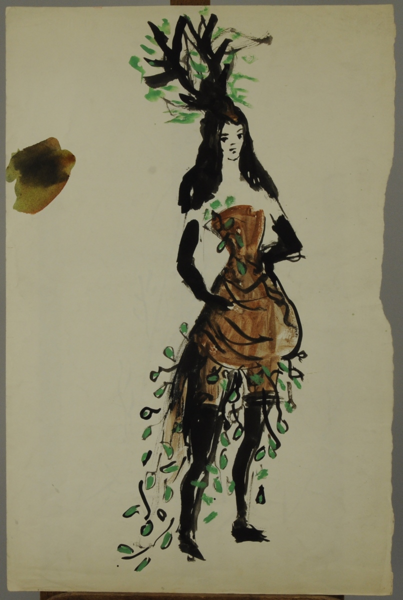 - FEMME-ARBRE. Gouache. 50 x 33,5 cm. (un autre dessin au dos)