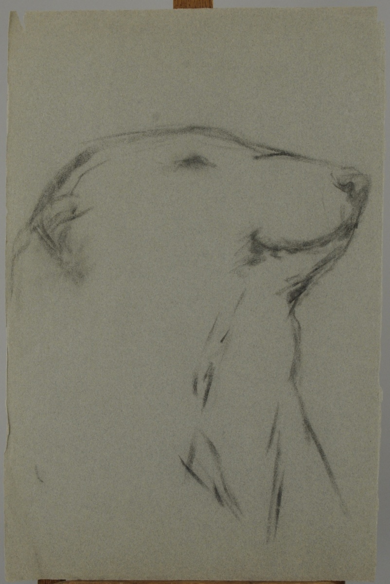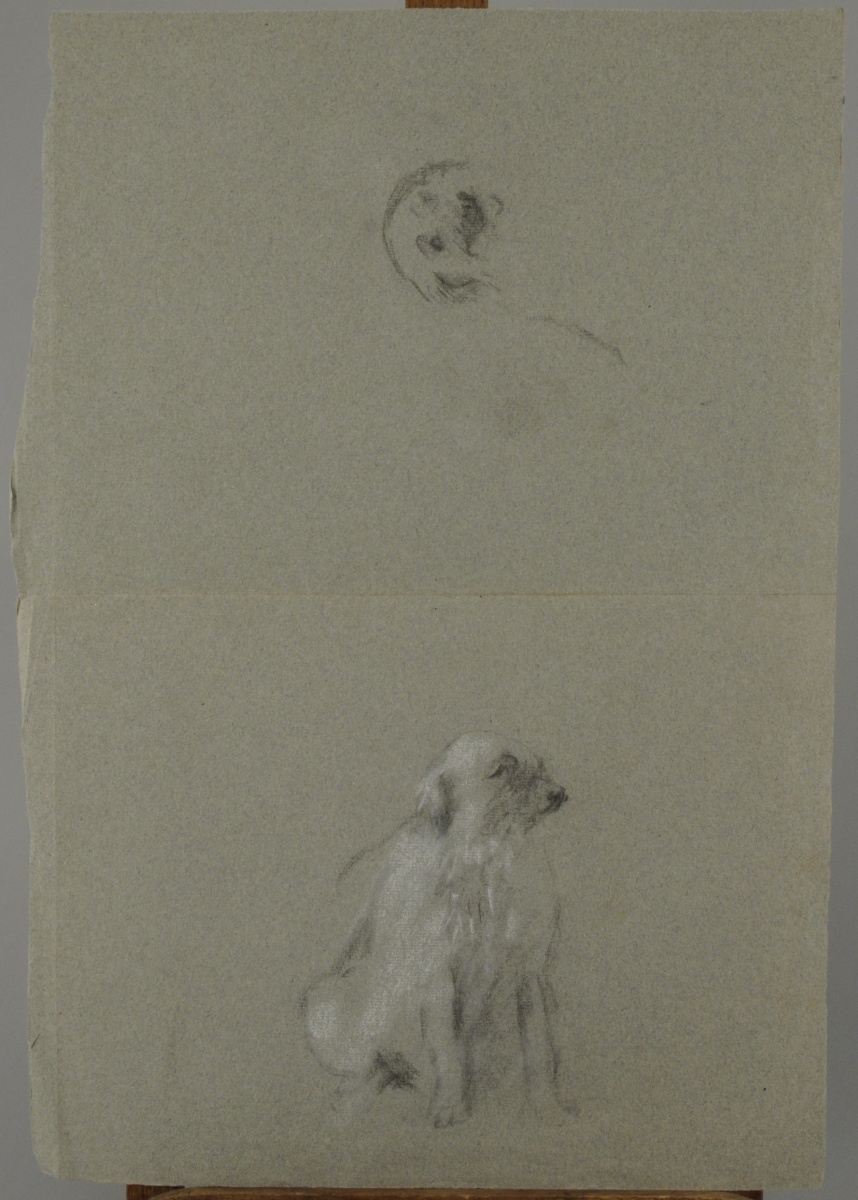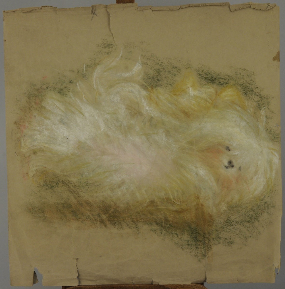 Joint: CHIEN faisant le beau. Pastel. 50 x 50 cm.