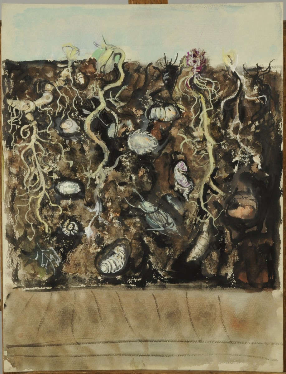 - La VIE SOUTERRAINE. Aquarelle et gouache sur papier. 32 x 24 cm.