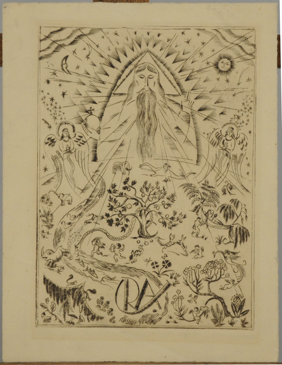 Joint: JARDIN D'EDEN. Lithographie, monogrammée "RAJ" dans la planche. 22 x 16,5 cm.