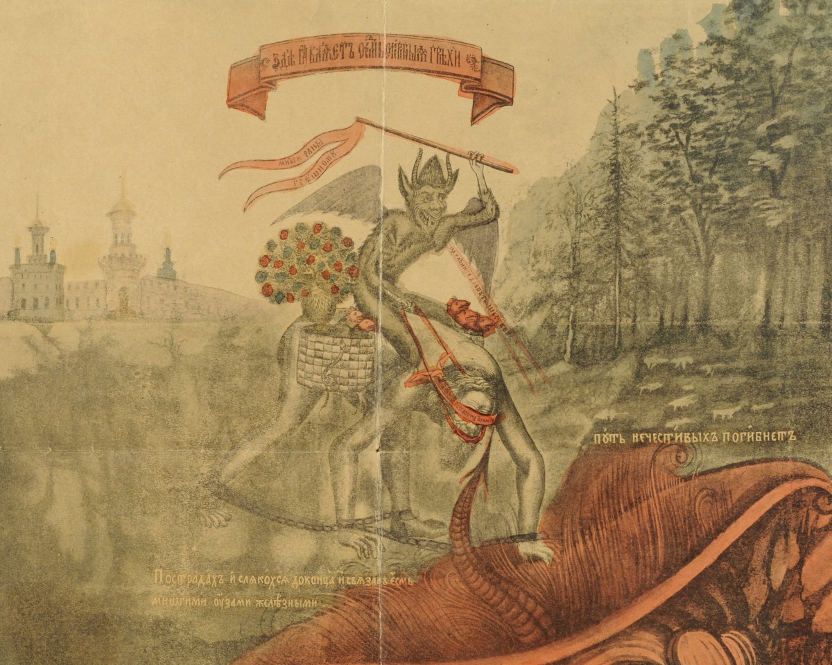 Quatre gravures rehaussées, certaines sur bois, annotées en vieux slavon.