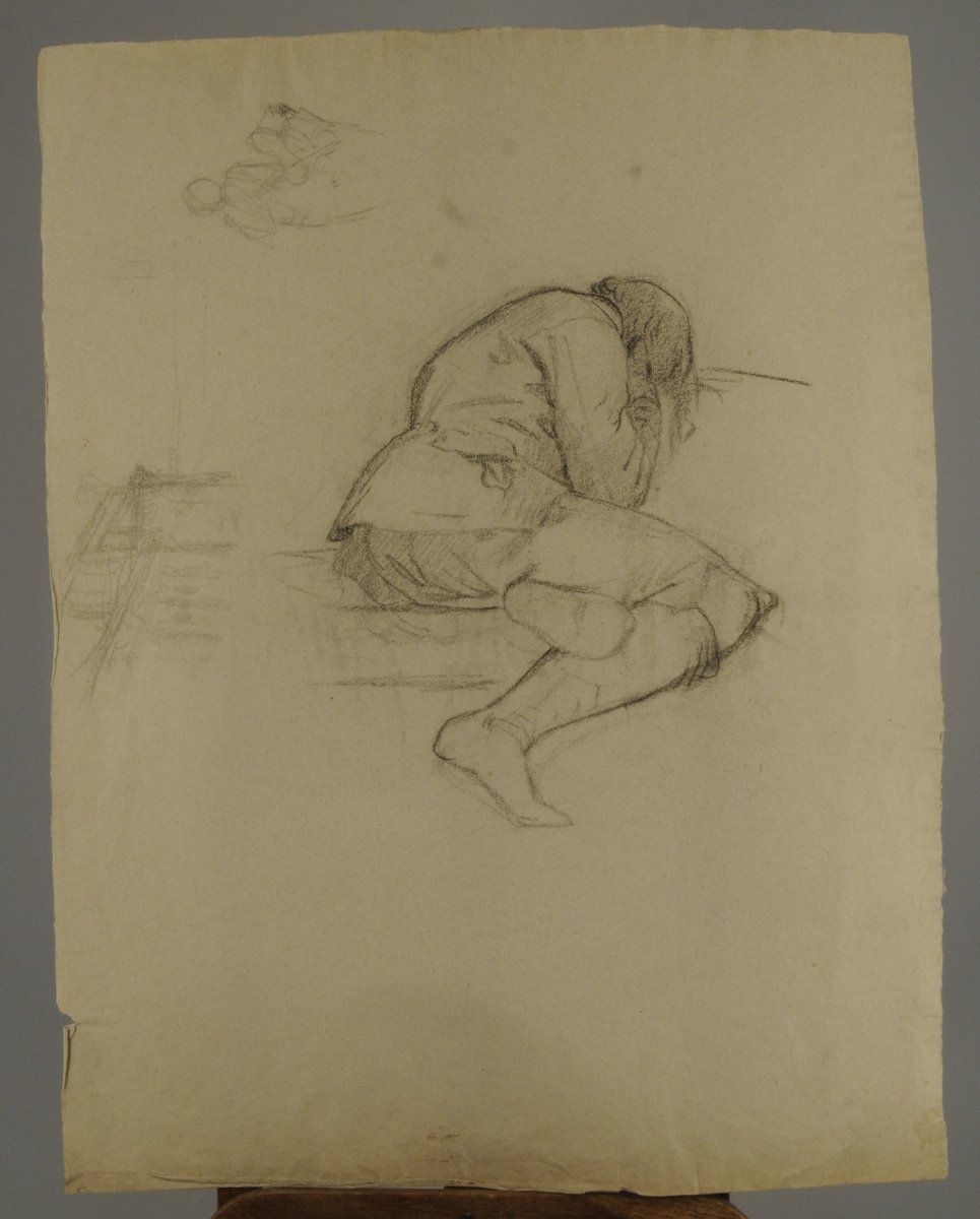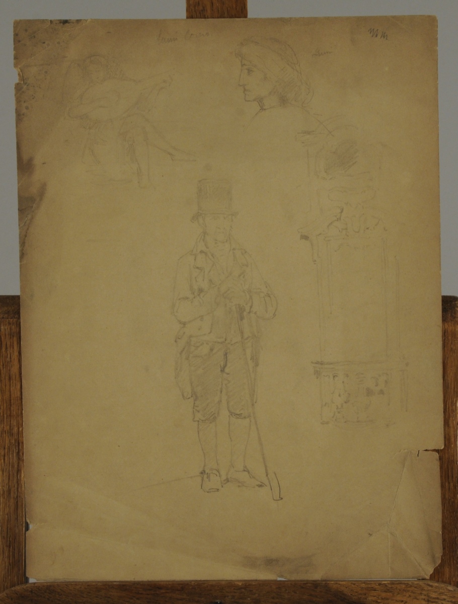 Études. 6 feuilles. Crayon sur papier, l'un rehaussé de craie blanche.