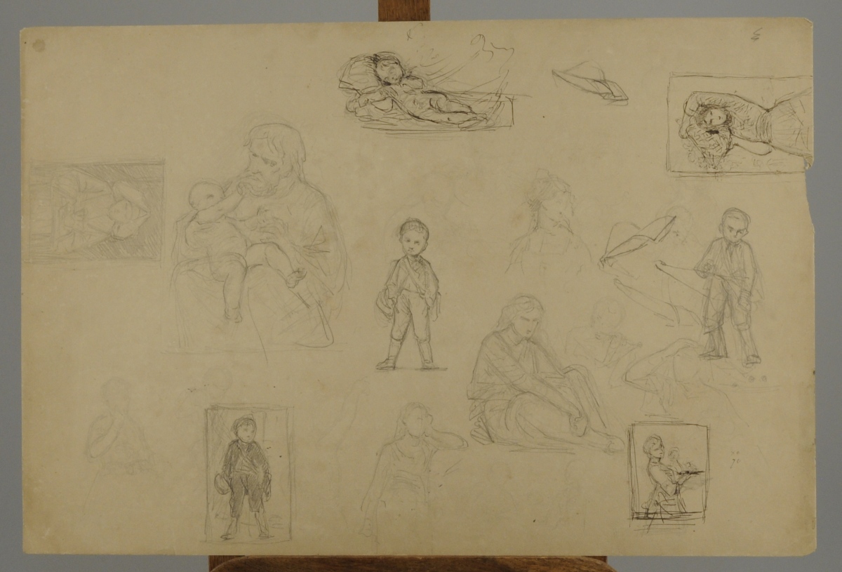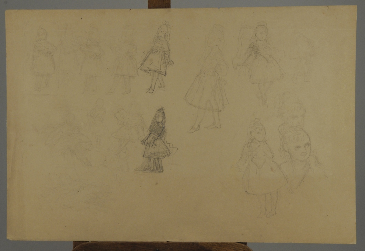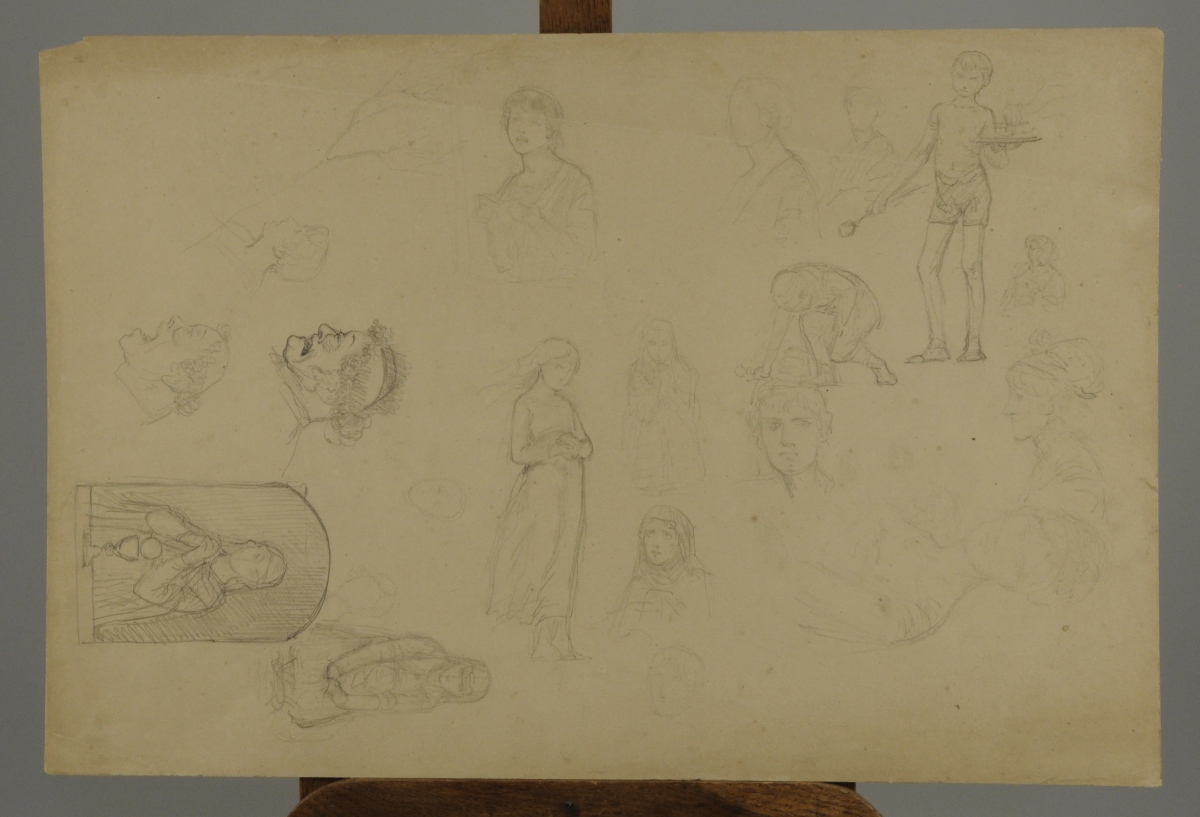 Études. 6 feuilles. Crayon sur papier, l'un rehaussé à l'encre noire.