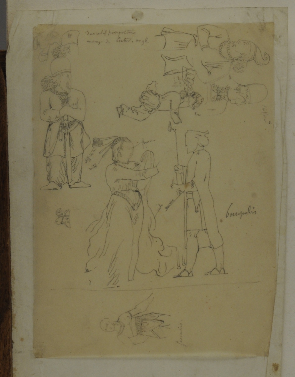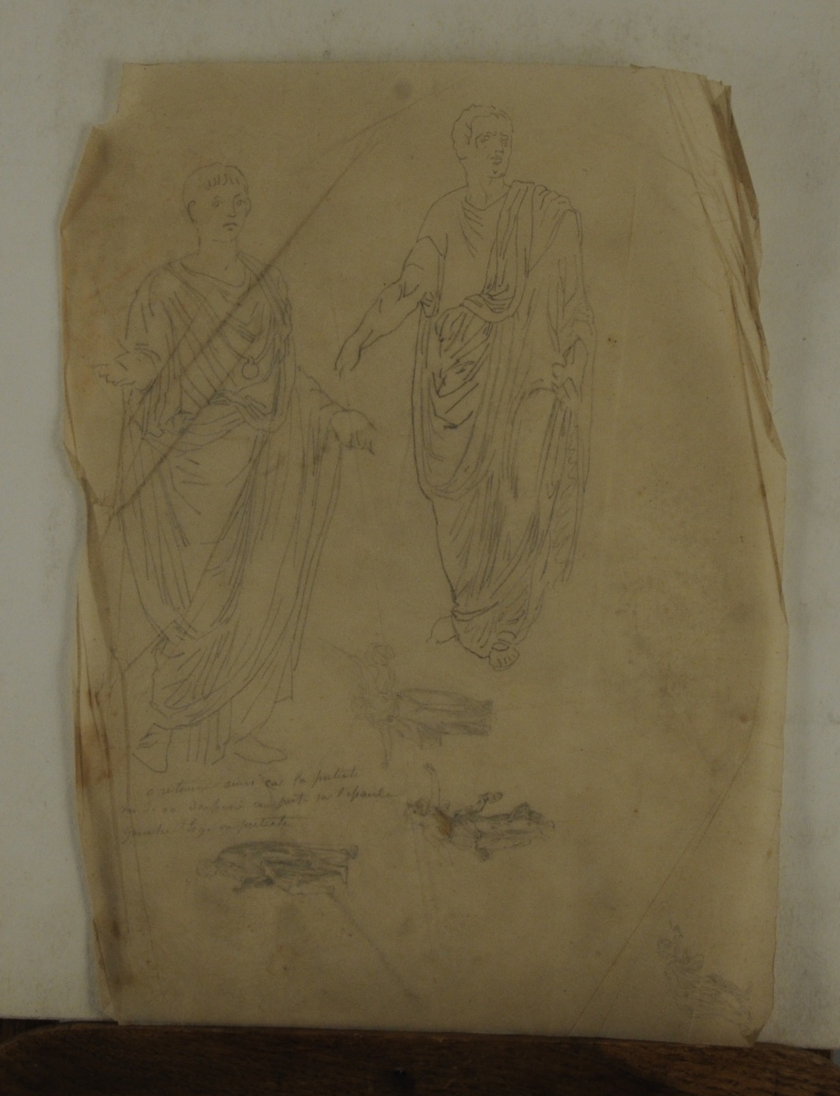 Joint: Homme vêtu d'un DRAPE à l'antique. Crayon sur calque, annoté. 29,5 x 21 cm. (papier plié)