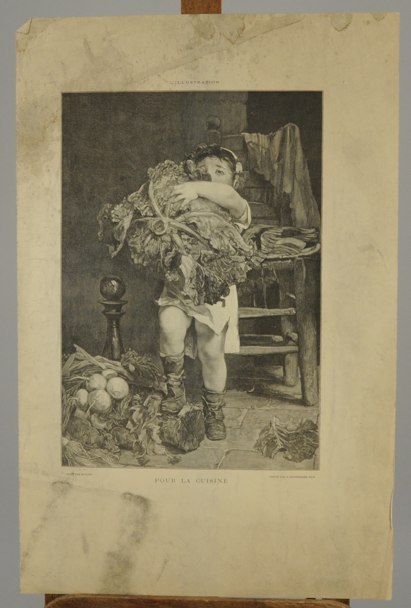 - d'après Charles Louis Lucien MÜLLER (Paris, 1815 - Paris, 1892). "Pour la cuisine". Gravure, titrée et annotée dans la marge "Peint par Muller / Gravé par S. Pannemaker Fils", 31,5 x 21,5 cm. (usures).