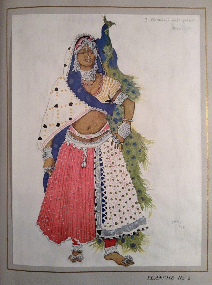In-folio (400 X 270 mm), portrait-frontispice, et 77 planches hors-texte, toutes, sauf une, de Léon Bakst, dont 50 en couleurs et 4 doubles. 1/2 vélin de l'éditeur.