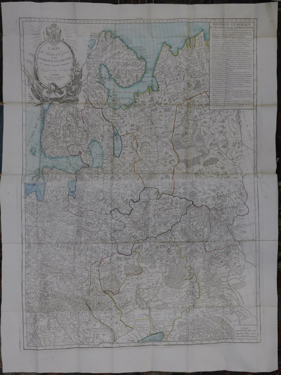 Carte rempliée mesurant 870 X 650 mm à la cuvette, dans sa chemise cartonnée de parution, avec ficelle d'origine. Frais coloris du temps..