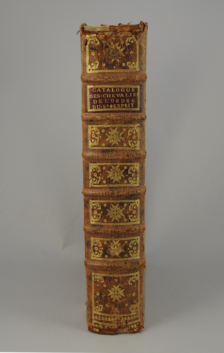 Grand in-folio ; frontispice ; faux-titre, titre, (2ff), IV pages, 568 pages. Plein veau fauve à fond de croisillons à la chaux ; grand fer du Saint Esprit au centre des plats ; chiffre H avec couronne royale dans les angles ; dos à 6 nerfs, orné dans les entre-nerfs de la Croix du Saint-Esprit. Roulettes sur les coupes. Toutes tranches dorées. (Coiffes arrachées ; coupes et nerfs épidermés ; coins émoussés. Quelques cahiers uniformémént roussis).