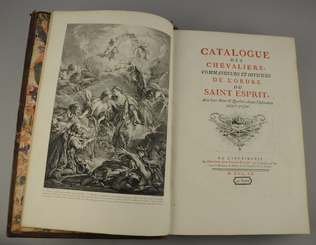 Catalogue des Chevaliers, commandeurs et officiers de l'Ordre du Saint Esprit, avec leurs noms et qualités, depuis l'Institution jusqu'à présent.