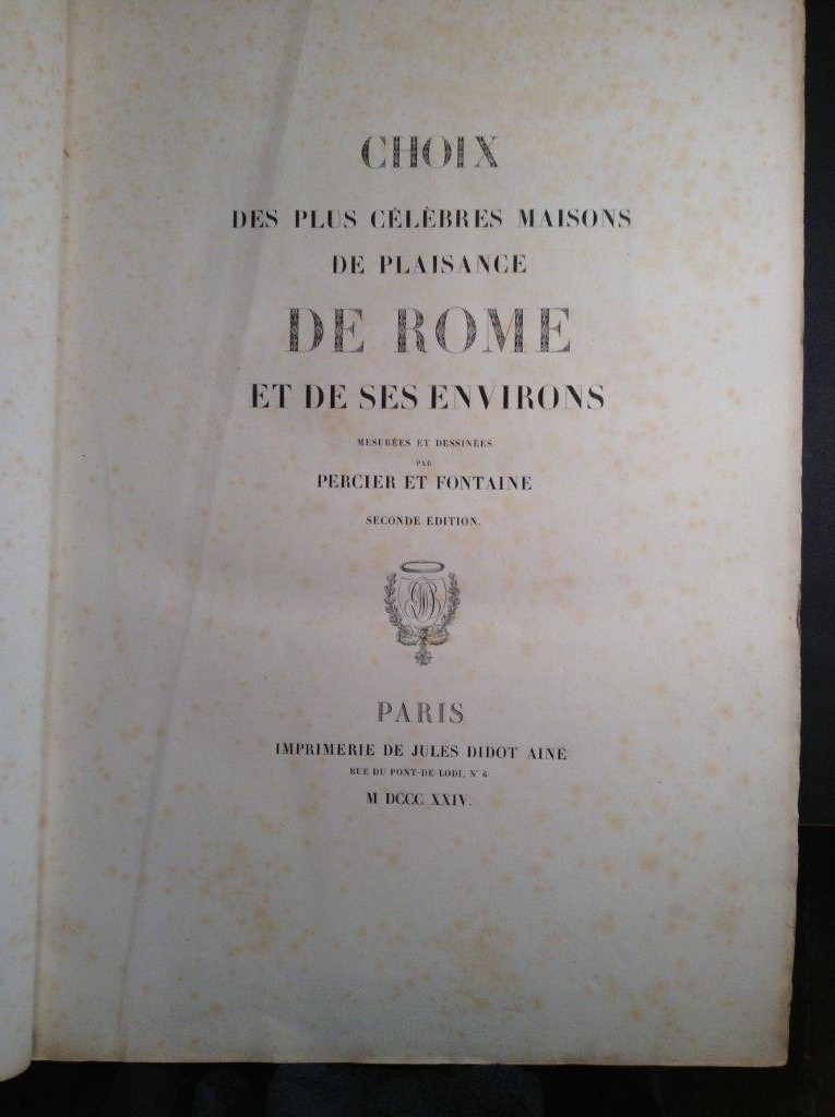 Choix des plus célébres maisons de plaisance de Rome et de ses environs, mesurées et dessinées par Percier et Fontaine. Seconde édition.