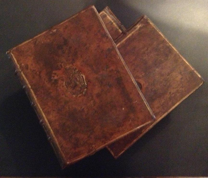 3 vol. in-4°, plein veau du temps, triple filet d'encadrement, armes (supprimées) sur les plats, dos ornés. (Usures aux coiffes, aux coins, quelques restaurations anciennes).