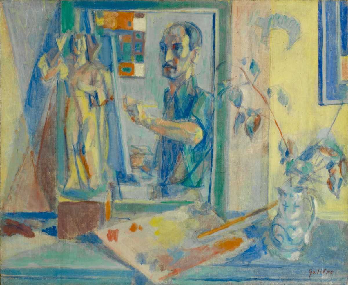 Victorin GALIÈRE (Le Born, 1914 - 1990)Autoportrait à la palette.Huile...