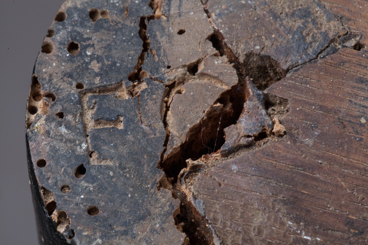 L'estampille "F.G." peut-être attribuée, d'après Kjellberg, à François Garnier, actif à partir de 1730, mort en 1774. Une petite armoire basse de Garnier, à 2 portes ornées de laque de Chine noir et