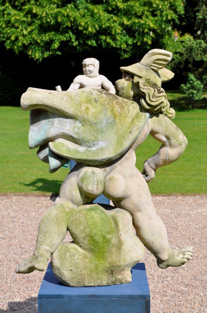 Haut. 100, Larg. 80, Prof. 35 cm. (Restaurations, notamment une aile du casque).