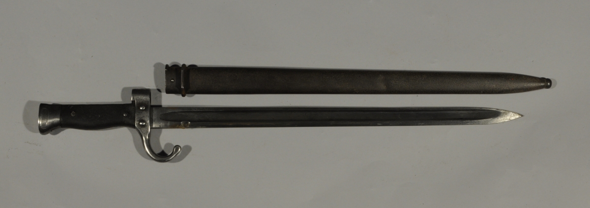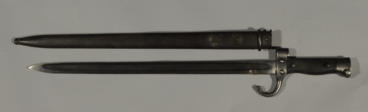 Poignée à plaquettes de bois. Fourreau en tôle de fer (coups).