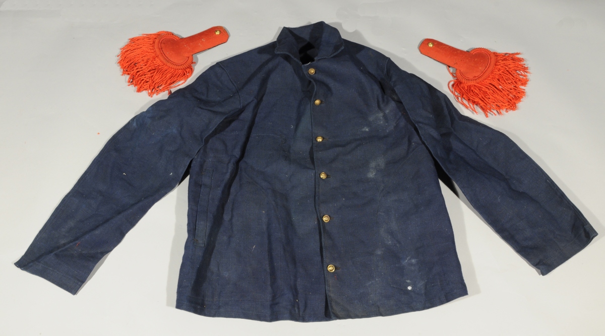 -Veste en grosse toile bleue fermant par six boutons de l'E.S.M. Avec marquages.