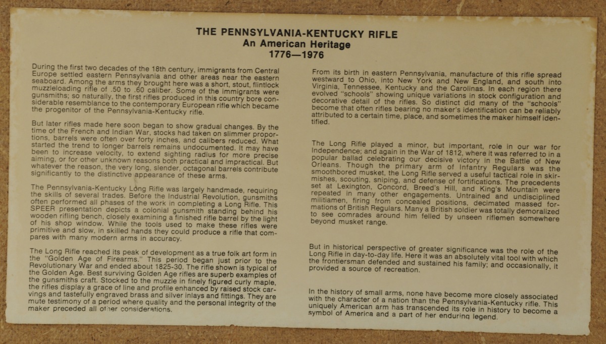 TABLEAU présentant les différents types d'ogives selon calibre. Réalisé en commémoration du bicentenaire de la création des États-Unis par la maison SPEER. Dans un cadre en bois. Années 1970. Haut. 22,5, Larg. 48 cm.