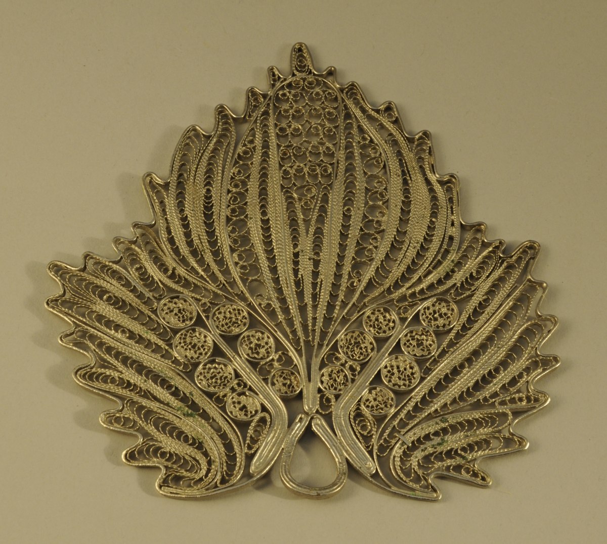FEUILLE de VIGNE en argent filigranné. Long. 14, Larg. 13 cm.
