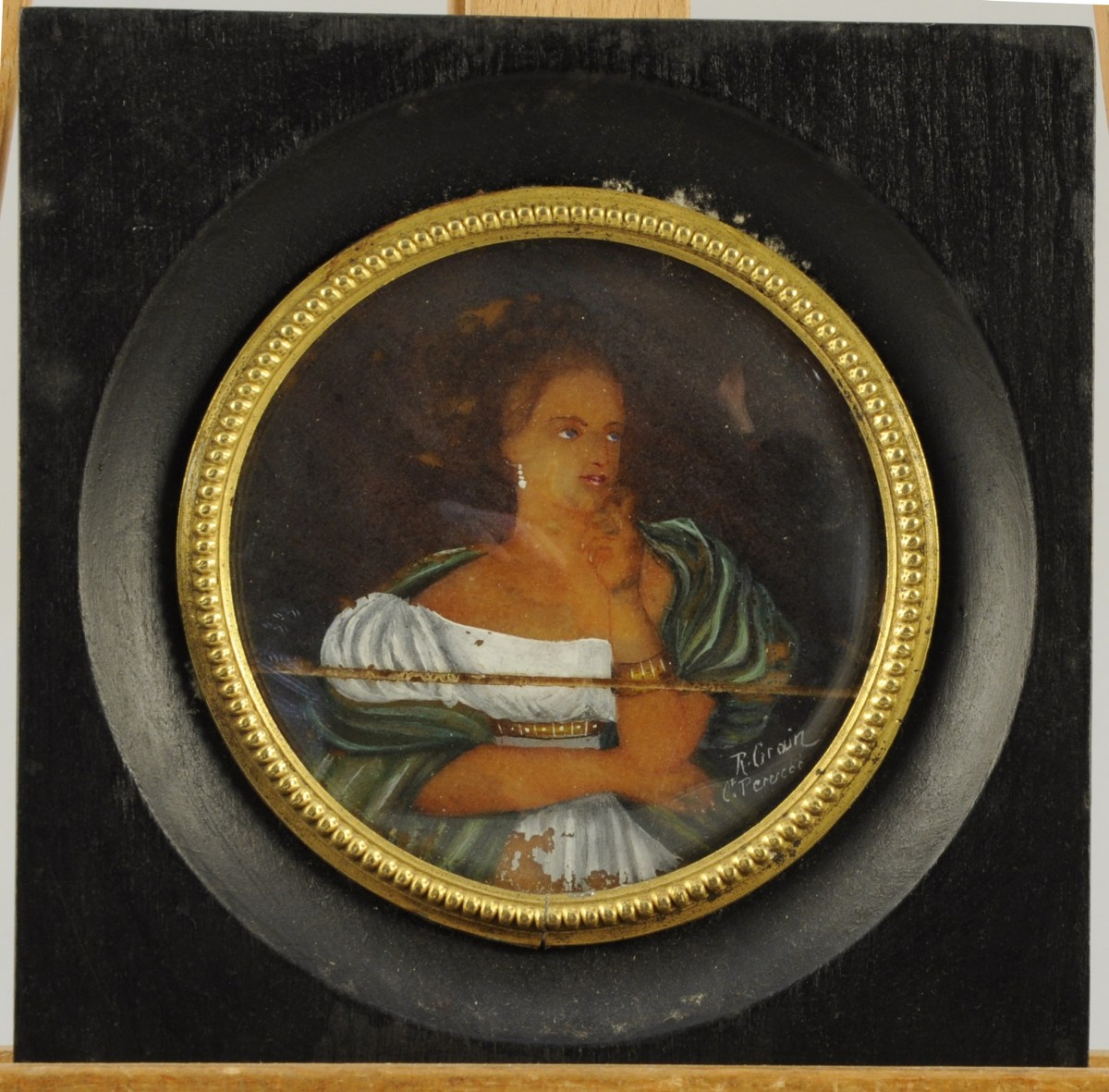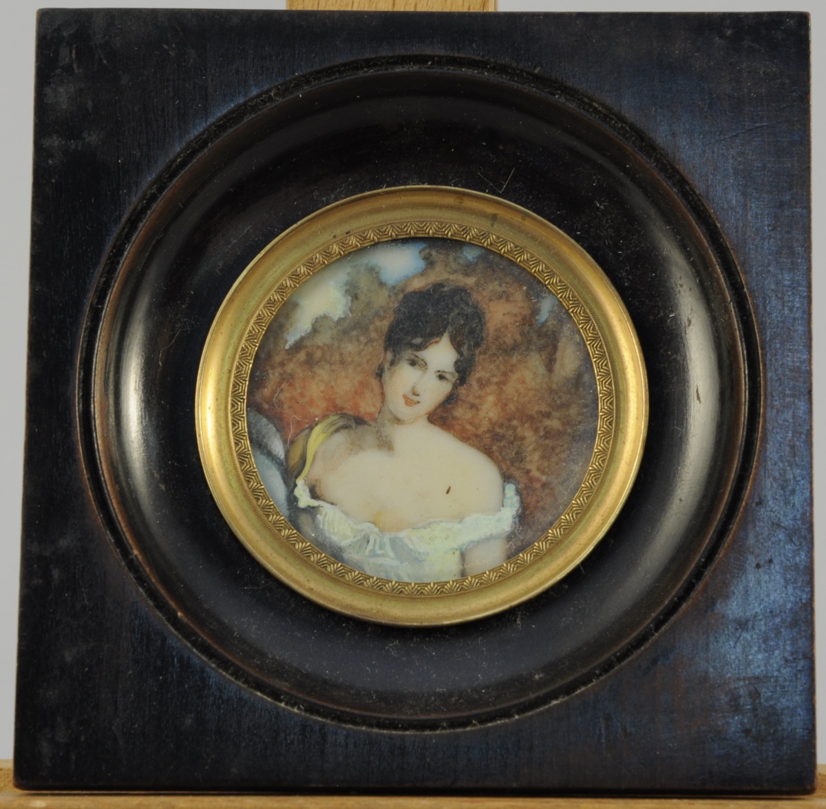JOINT: PORTRAIT DE FEMME. Miniature sur ivoire. Diam. 4,6 cm