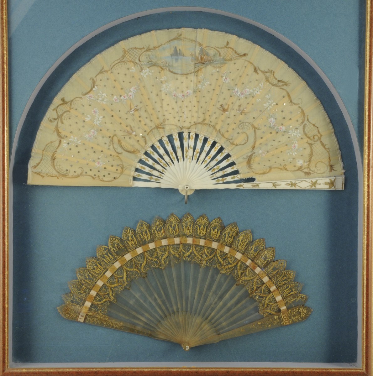 LOT de DEUX ÉVENTAILS dans un CADRE: