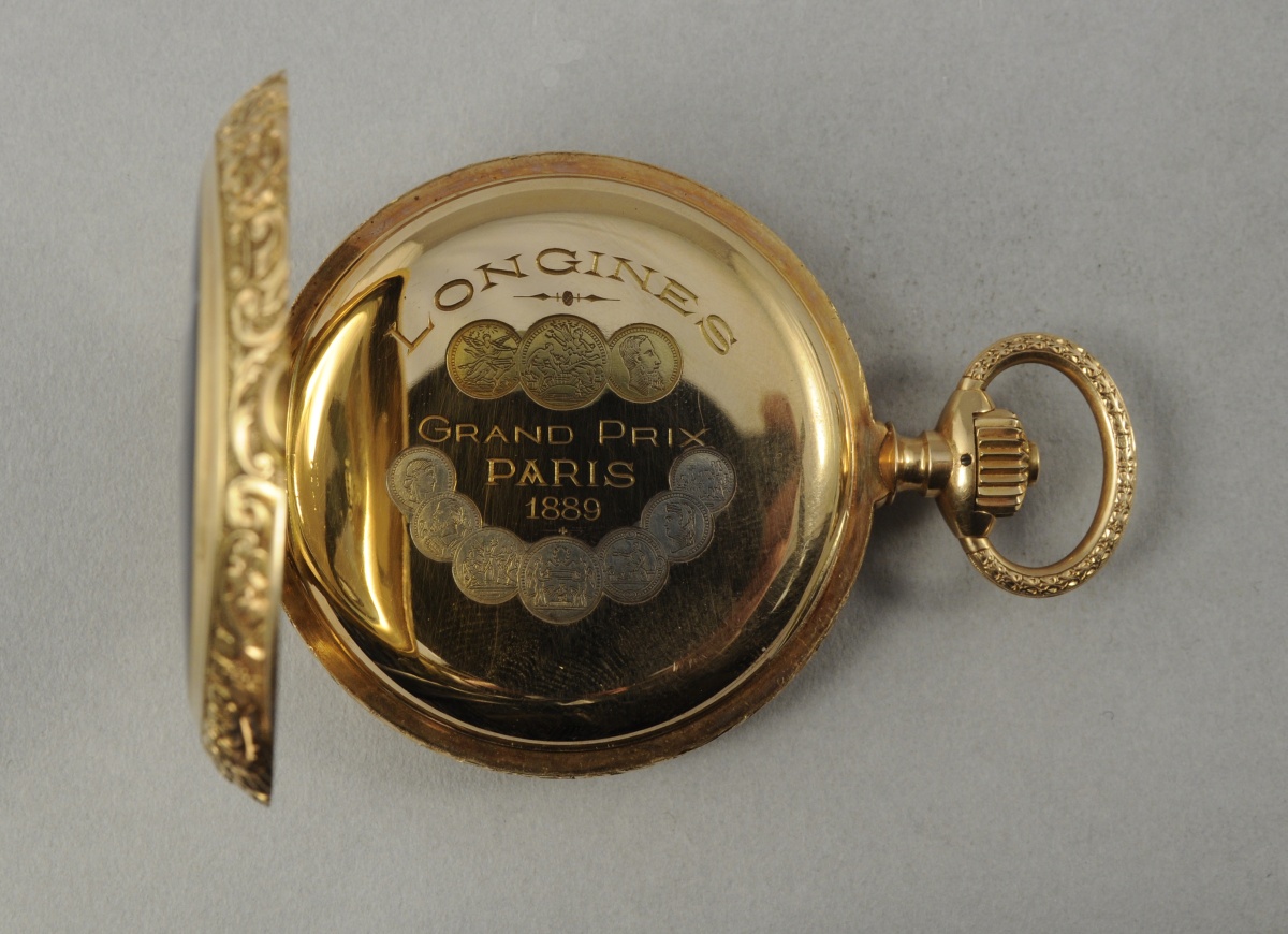 Double cuvette signée et gravée "Grand Prix Paris 1889" dans un entourage de médailles.