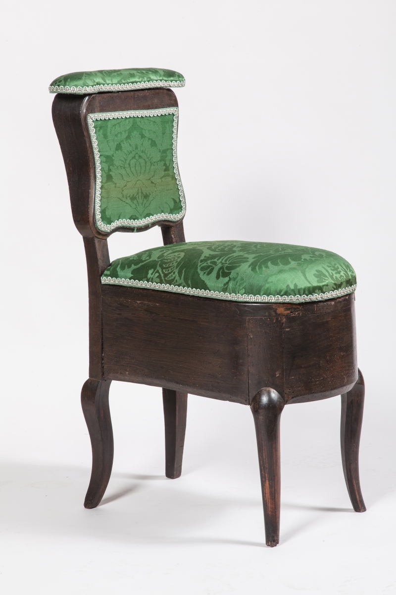 Au temps du Duc de Choiseul, les appartements du château de Chanteloup ne comptent pas moins de trente-quatre bidets. Celui-ci, le modèle le plus commun, est conçu d'après le modèle raffiné de l'ébéniste Jean-François Oeben. En acajou massif et placage d'acajou satiné, ses pieds galbés sont terminés par de petits sabots de bronze doré, abattant et dossier étant garnis de maroquin. Réservés aux appartements les plus luxueux, trois de ces meubles sont conservés dans les collections des musées de Tours, des Arts décoratifs et de Sceaux.