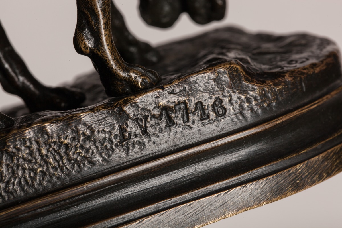 Bronze patiné, signé sur la terrasse, monogrammé E.V. et numéroté 1716.