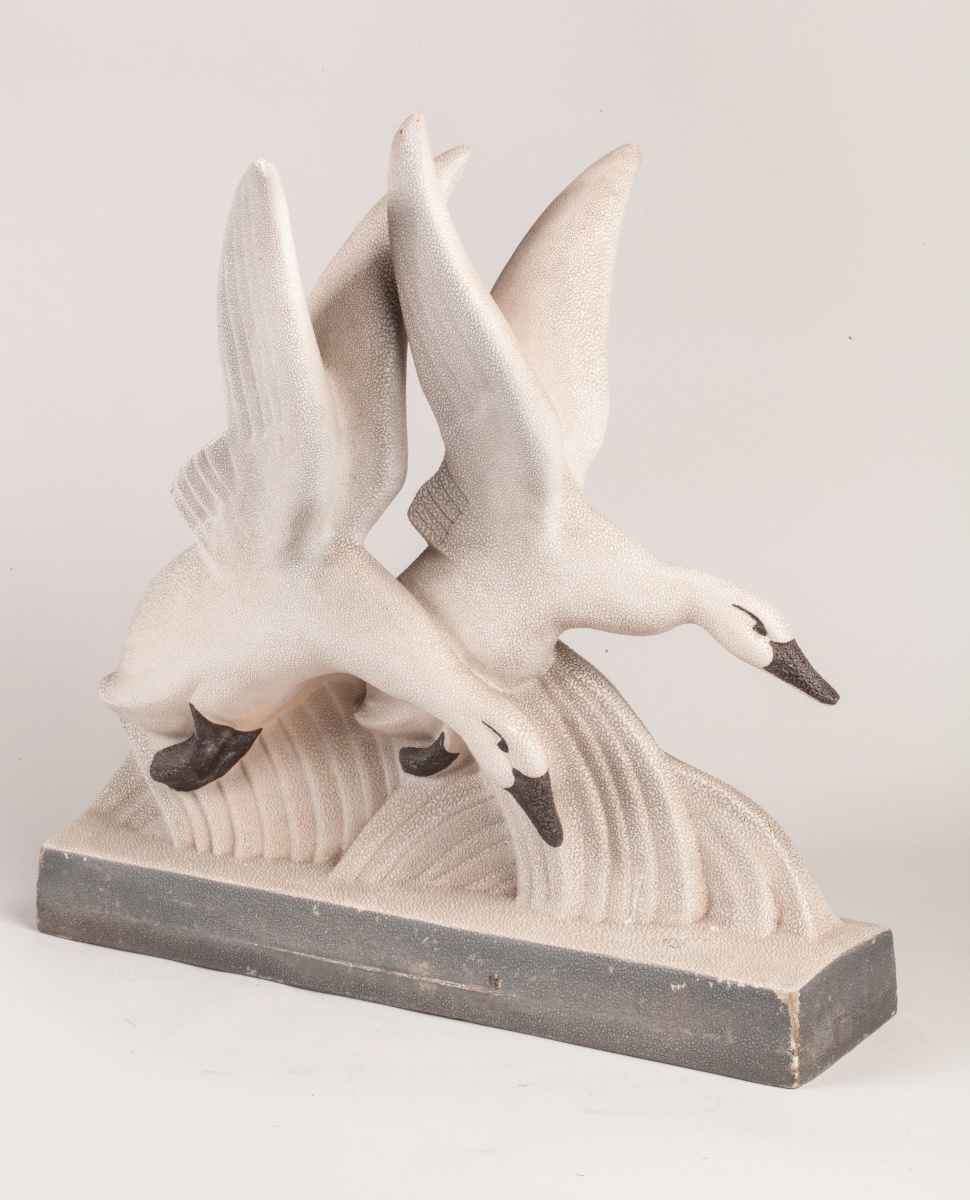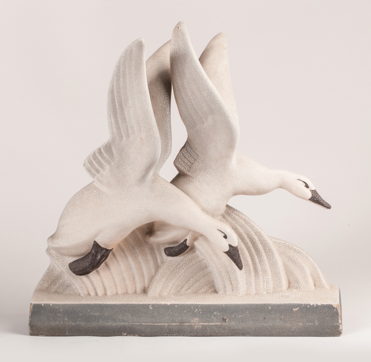 MANUFACTURE DE SAINTE RADEGONDE (?)Couple d'oies en vol.Céramique à couverte...