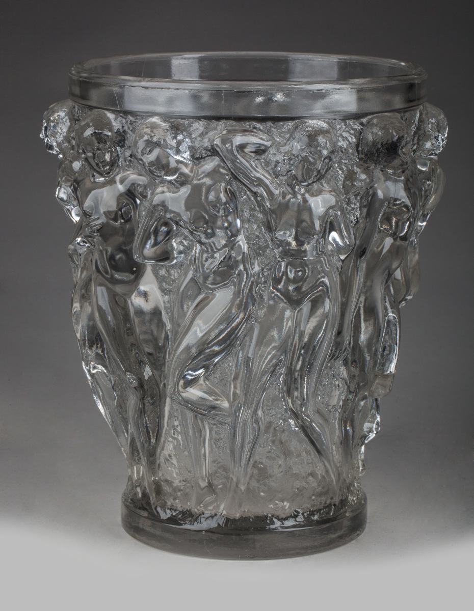 Créé en 1927 par René Lalique, le vase Bacchantes est aujourd'hui encore un standard de la célèbre maison alsacienne. Ces dix corps de jeunes femmes nues illustrent la parfaite maîtrise de la sculpture néoclassique par le maître-verrier.