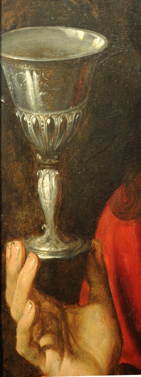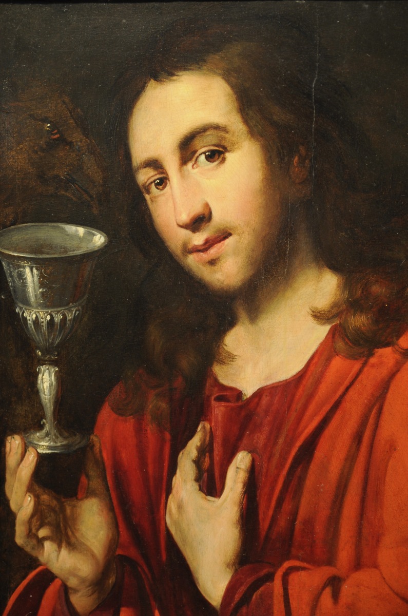 On pourra comparer notre Saint Jean l'Evangéliste avec celui, de localisation inconnue, reproduit in: Artus Wolffort, 1581-1641, Ein Vergessener Antwerpener Maler, par le Professeur Hans Vlieghe, 1977, p.97, figure 7: Atribué à Wolffort, panneau, 62, 5 x 46, 5 cm ; (on observe que la position de la main droite est différente).