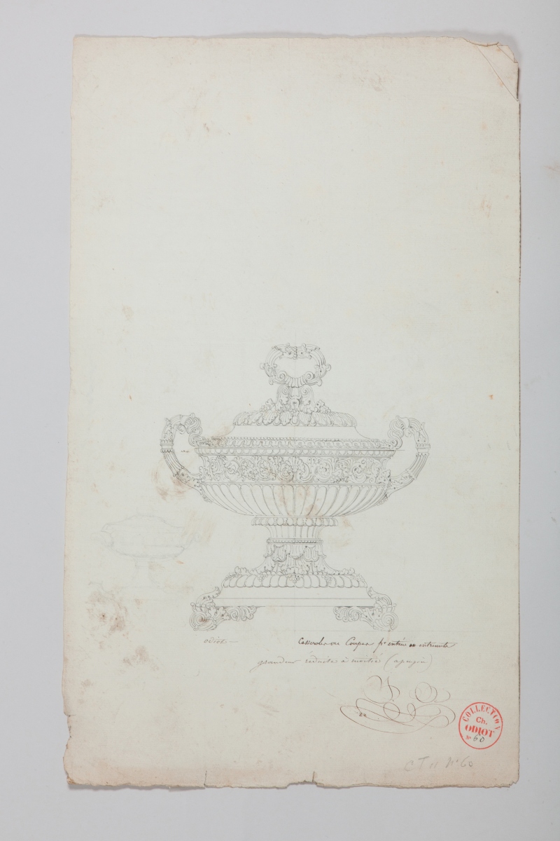 Annotation: "Odiot - Casserole ou coupe pour entrées ou entremets, grandeur réduite à moitié (à peu près)" et paraphes.