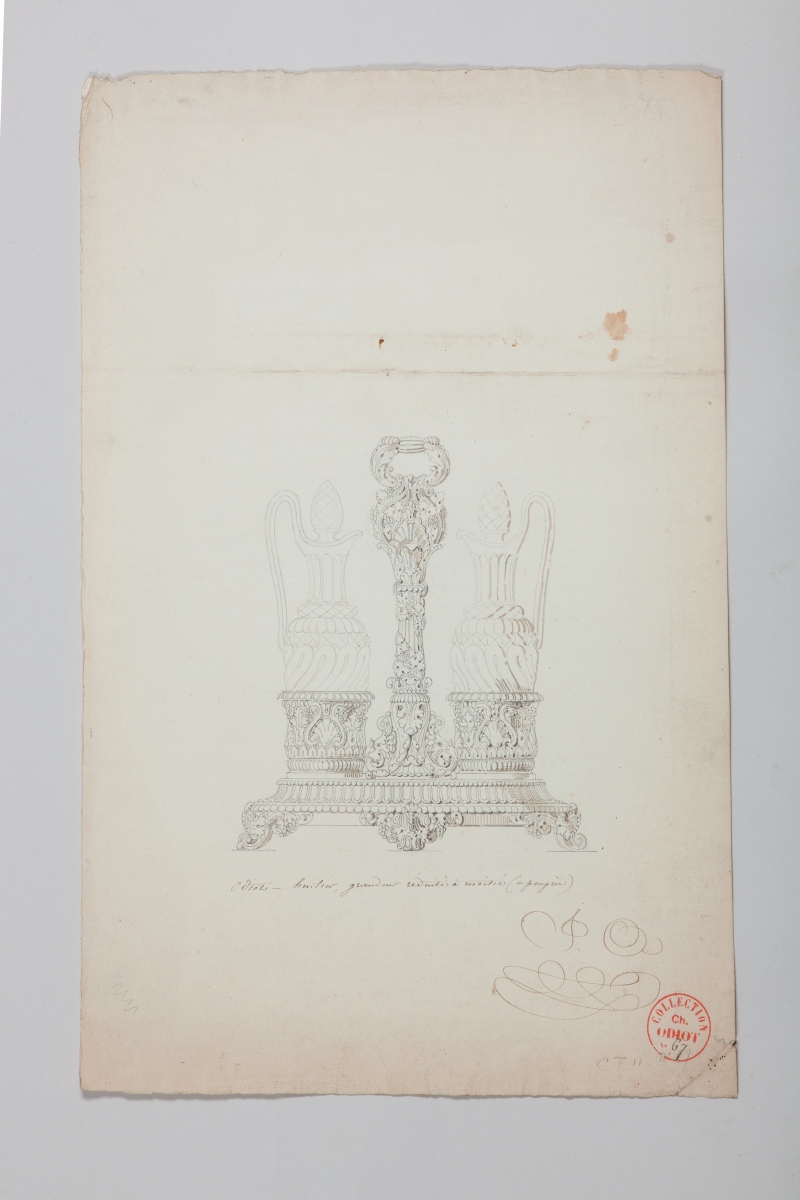 ODIOT "HUILIER deux carafons" - N° 67.Projet. Crayon, encre, rehauts...