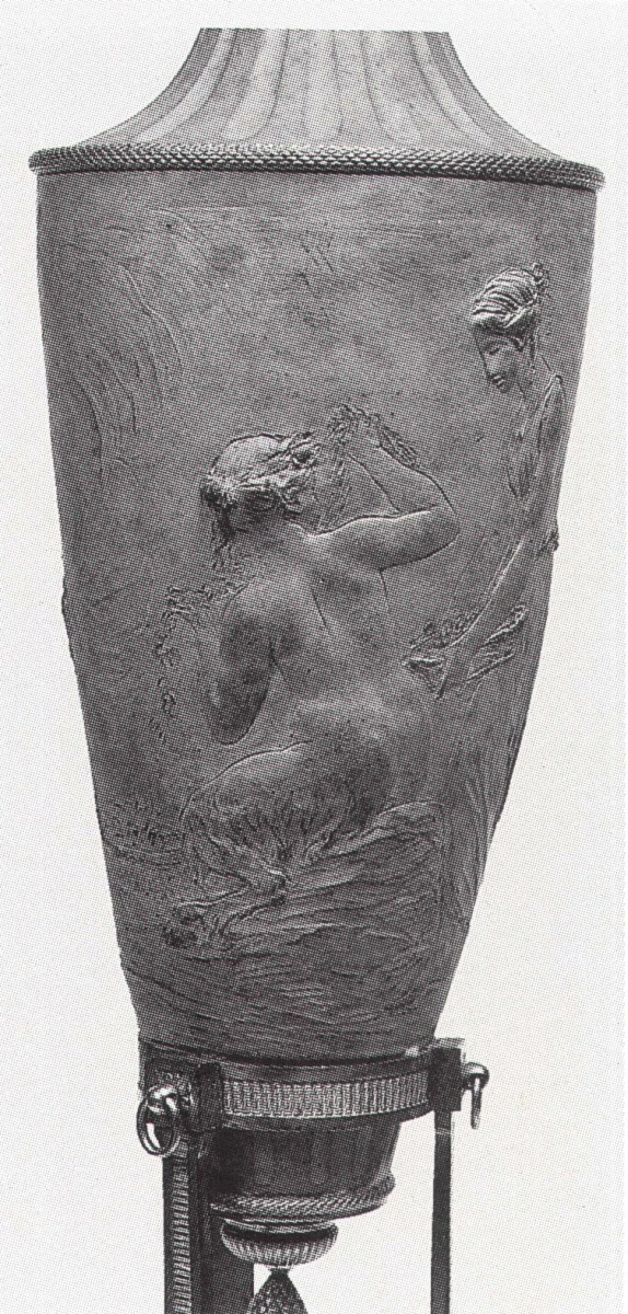 décoré de bas reliefs représentant des faunesses et nymphes tressant des couronnes.