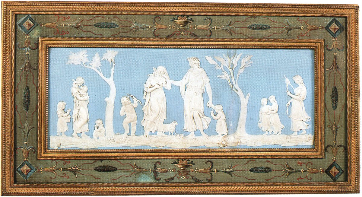 Le marchand-mercier Daguerre eut l'idée de faire monter sur des meubles des plaques de Wedgwood et obtint même le monopole de leur importation en 1787 lors du voyage du fils de Thomas Wedgwood en France