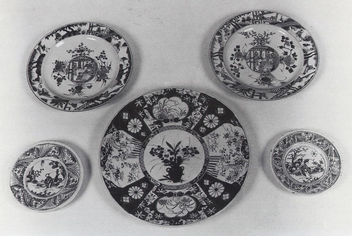 CHINE. PAIRE DE GRANDS PLATS en camaïeu bleu, scènes animées. XVIIIème.