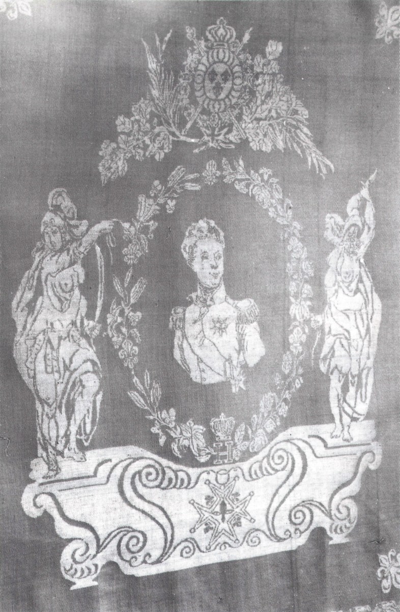 SERVICE DE TABLE en damassé blanc comprenant une nappe (260 × 320 cm) et 24 serviettes (86 × 97 cm) offert par le comte de Chambord.