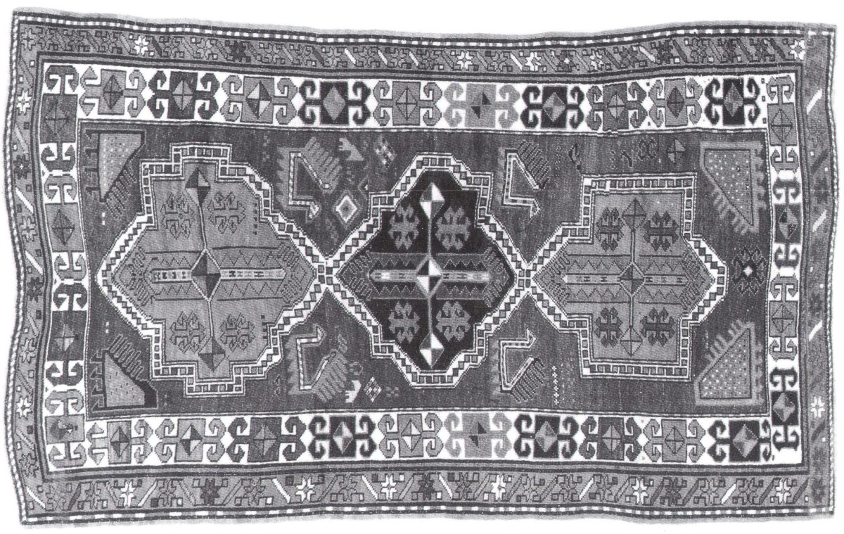 TAPIS KAZACK, Caucase, ancien, fin XIXe siècle, fond bleu ciel...