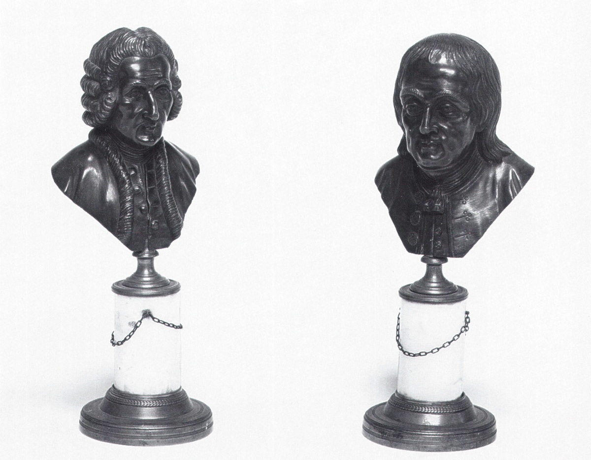 PAIRE de jolis petits BUSTES, représentant Voltaire et Benjamin Franklin....