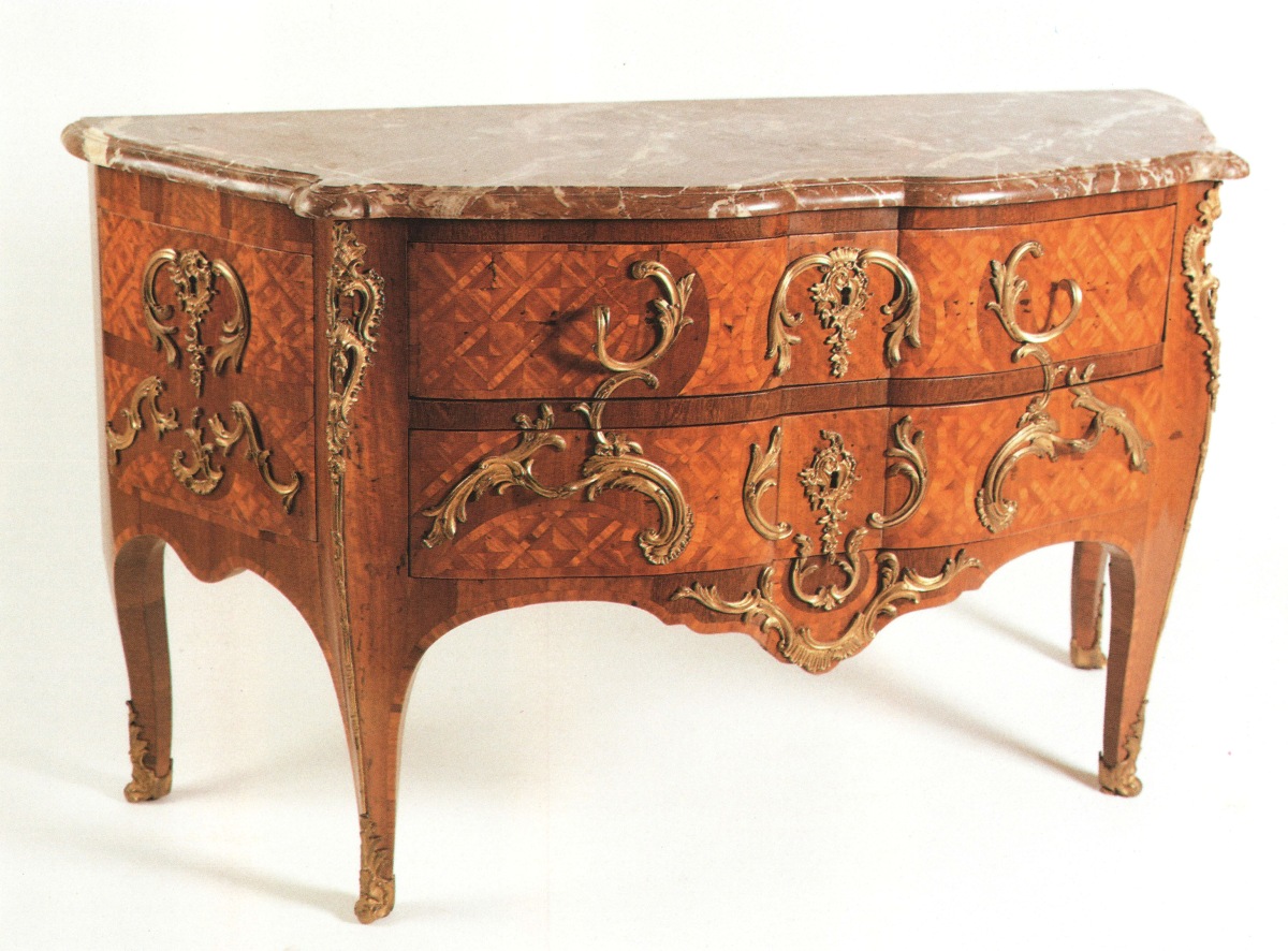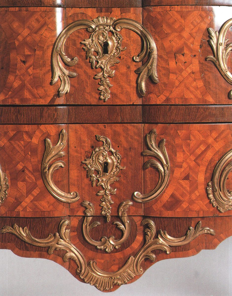 Ce meuble est très intéressant car il montre par sa forme, sa marqueterie et surtout l'invention du système des panneaux mobiles des côtés, l'ingéniosité de Cressent, qui avait inventé tous ces détails.