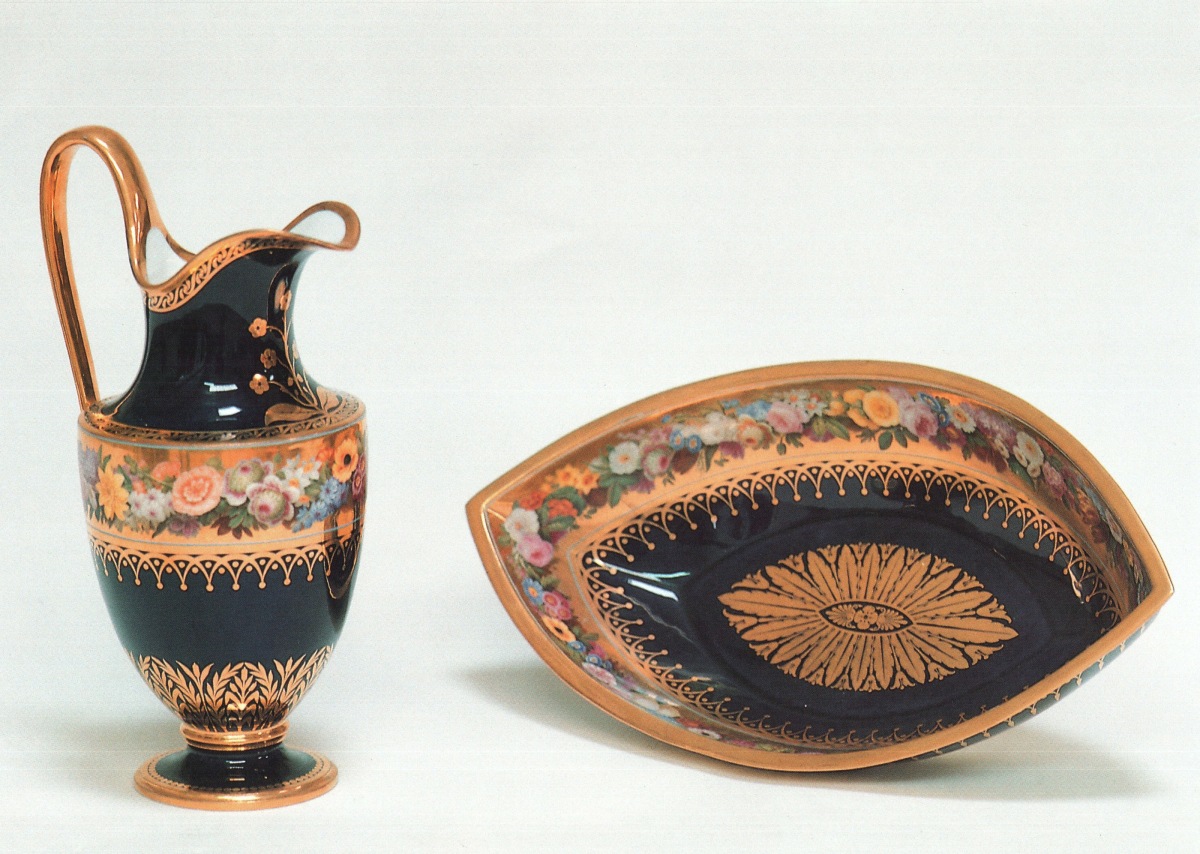 SÈVRES : belle AIGUIÈRE et son BASSIN en porcelaine à...