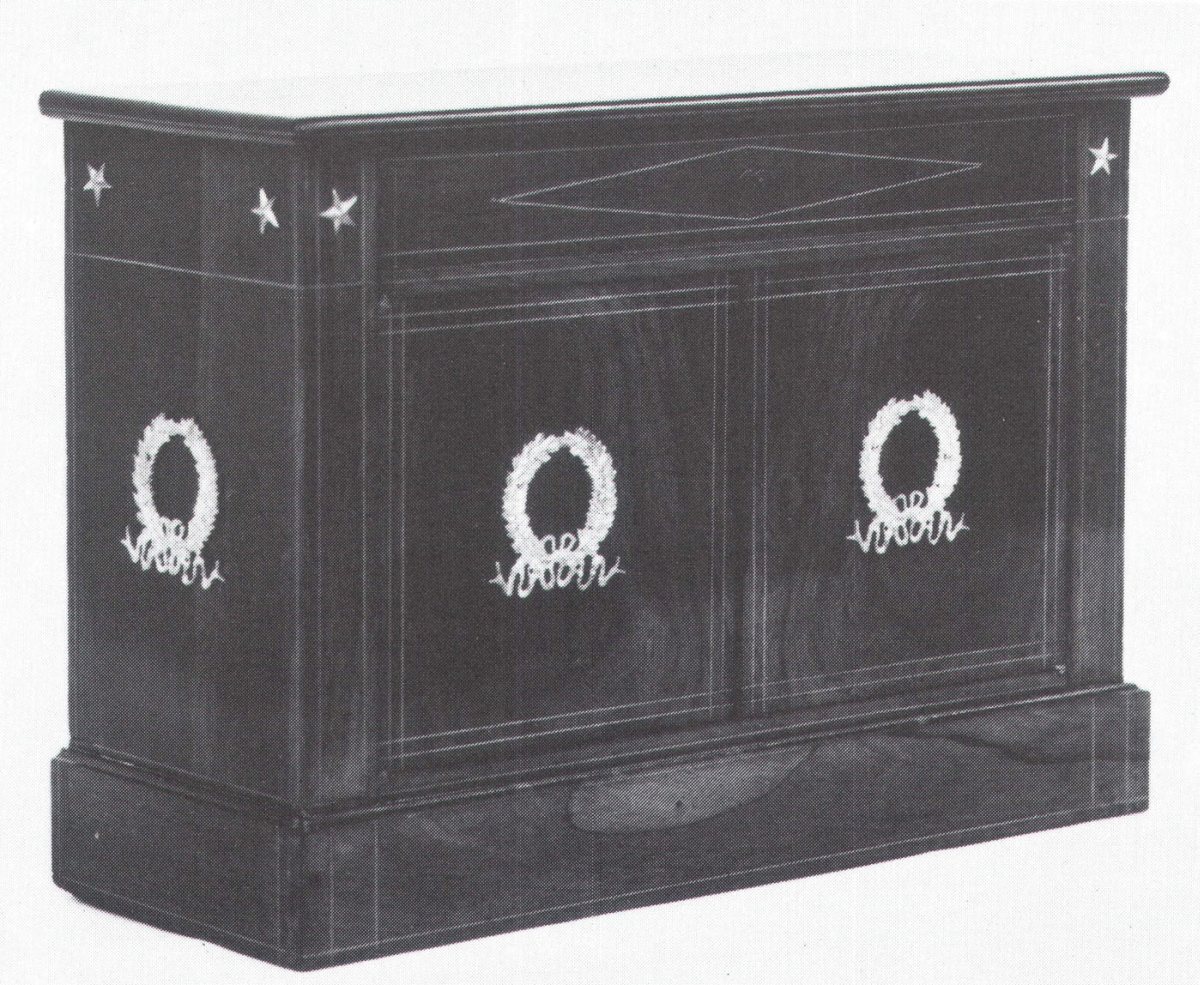 COMMODE en placage de palissandre ouvrant à un tiroir supérieur et deux portes. Ornementation de bronze, couronnes de feuilles nouées d'un ruban sur les portes et les côtés.