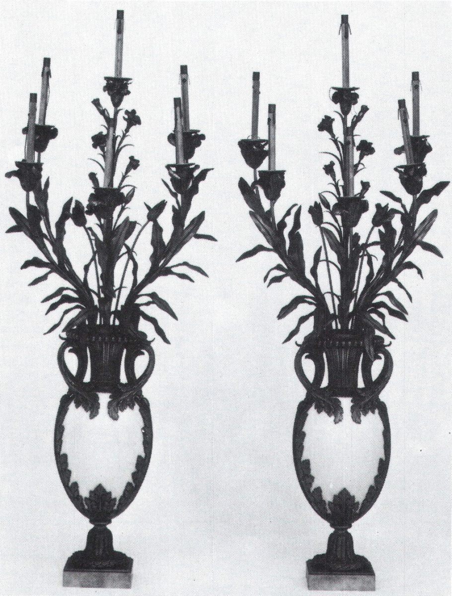 Importante PAIRE DE CANDÉLABRES à six lumières formés d'œillets et...
