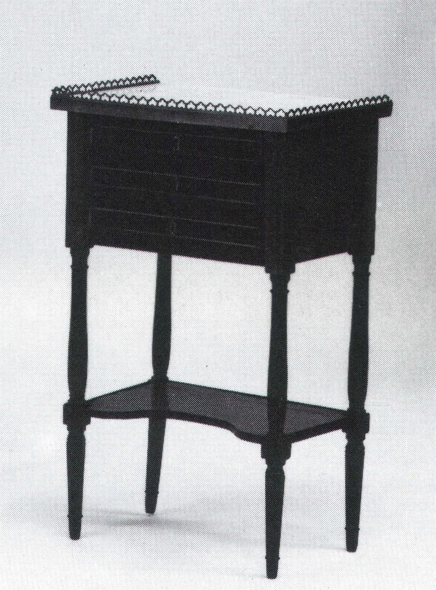 Pieds fuselés réunis par une tablette évidée.