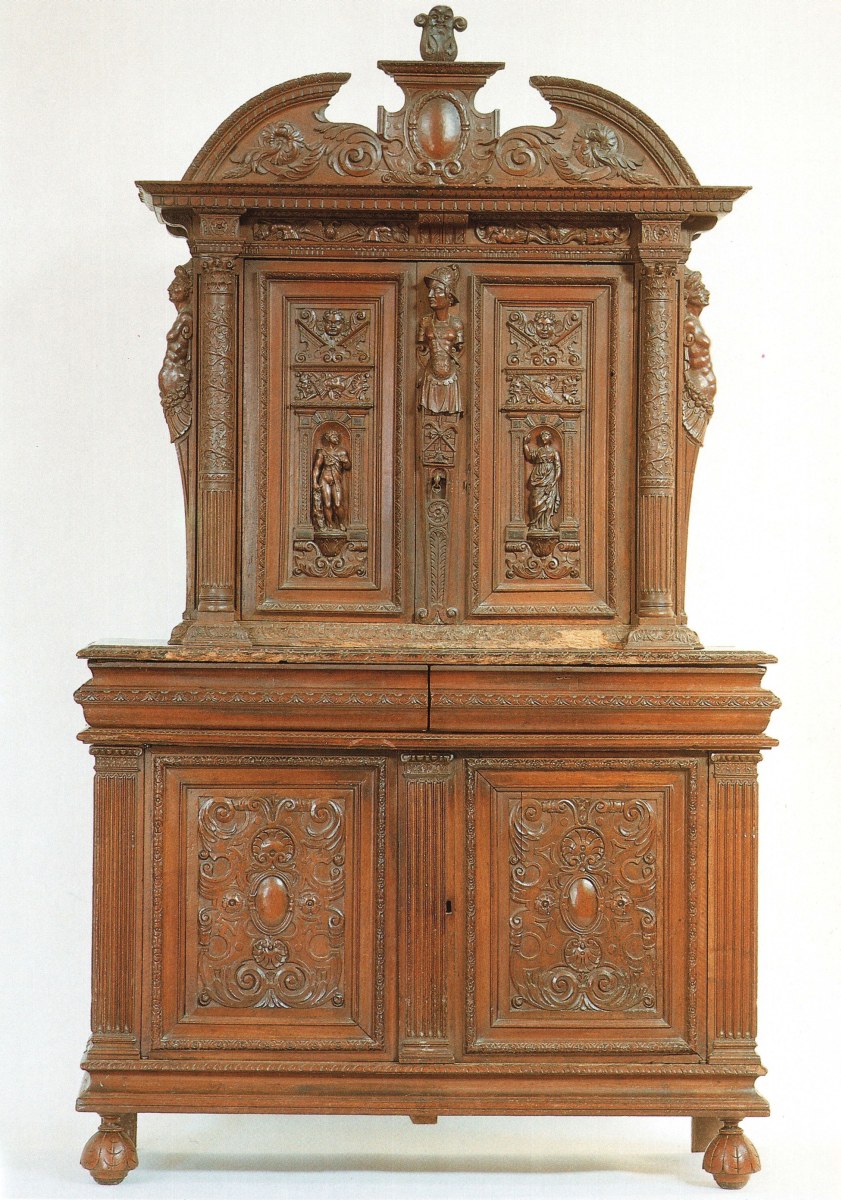 Travail ancien en partie des XVIe et XVIIe siècles. Vraisemblablement de production parisienne pour le buffet bas et d'un atelier bourguignon pour la partie supérieure, dans le goût de Sambin.