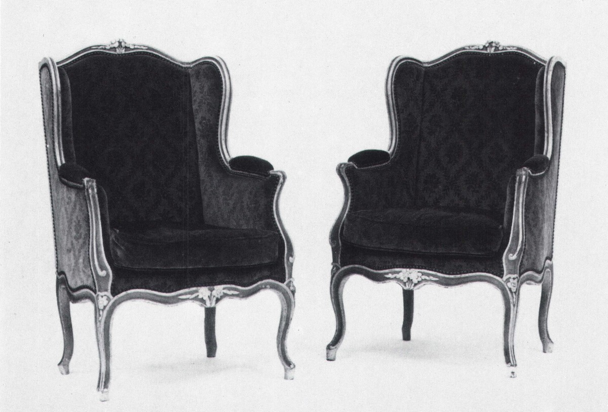 Paire de BERGÈRES à oreilles en hêtre repeint crème et...